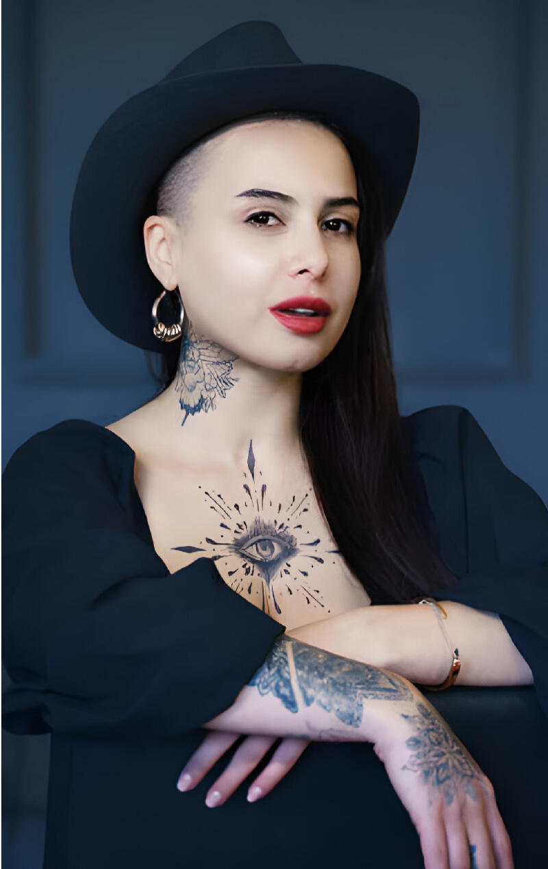 Estilo: Luz se especializa en tatuajes realistas y en blanco y negro. Sus diseños muestran una increĂble atenciĂ³n al detalle y una habilidad para capturar la esencia de los sujetos en sus tatuajes.